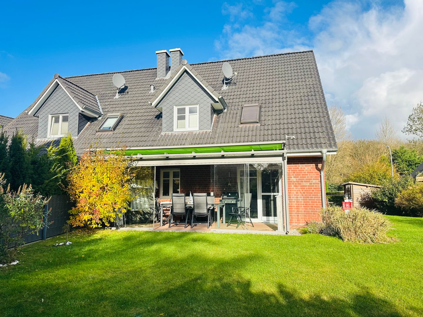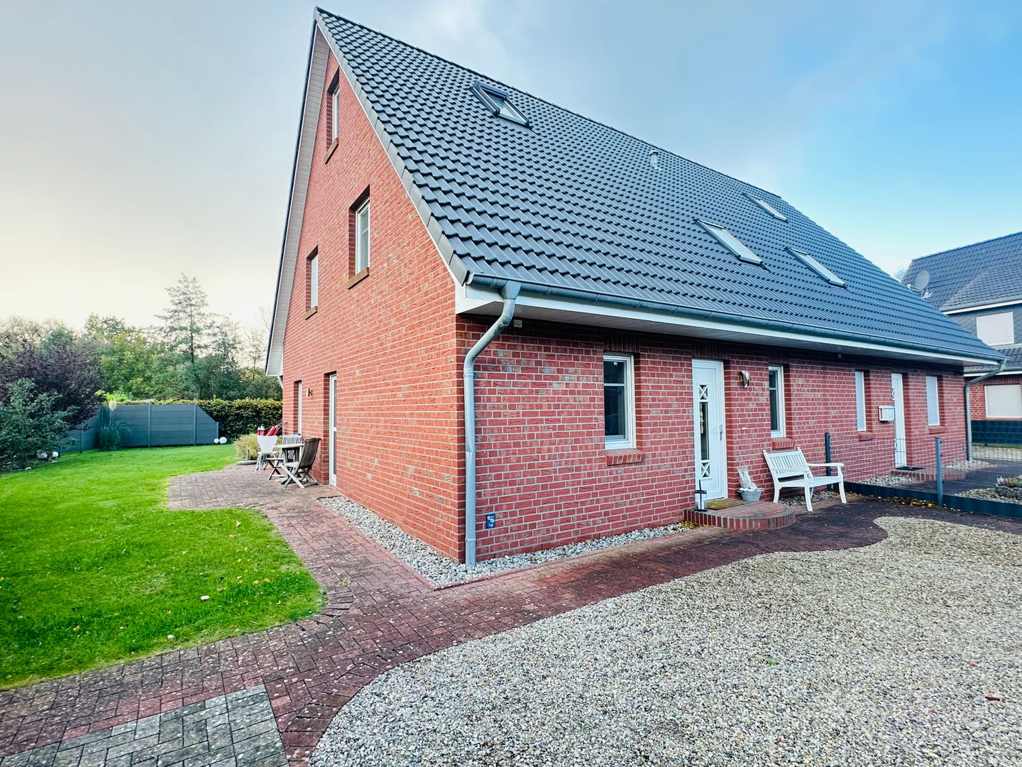 Der eingezäunte Garten bietet zusätzlich viel Platz zum Entspannen und Spielen.