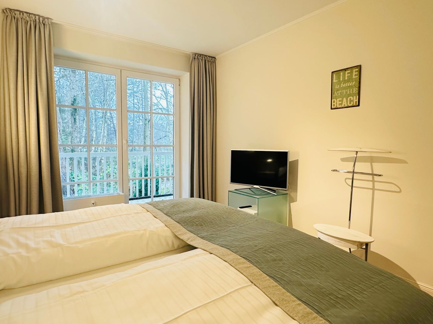 Auf Wunsch kann die hauseigene Sauna mit Ruhebereich im Untergeschoss kostenlos genutzt werden. Der Balkon mit Gartenmöbeln bietet einen wunderschönen Blick ins Grüne, da sich dort ein kleines Wäldchen befindet.