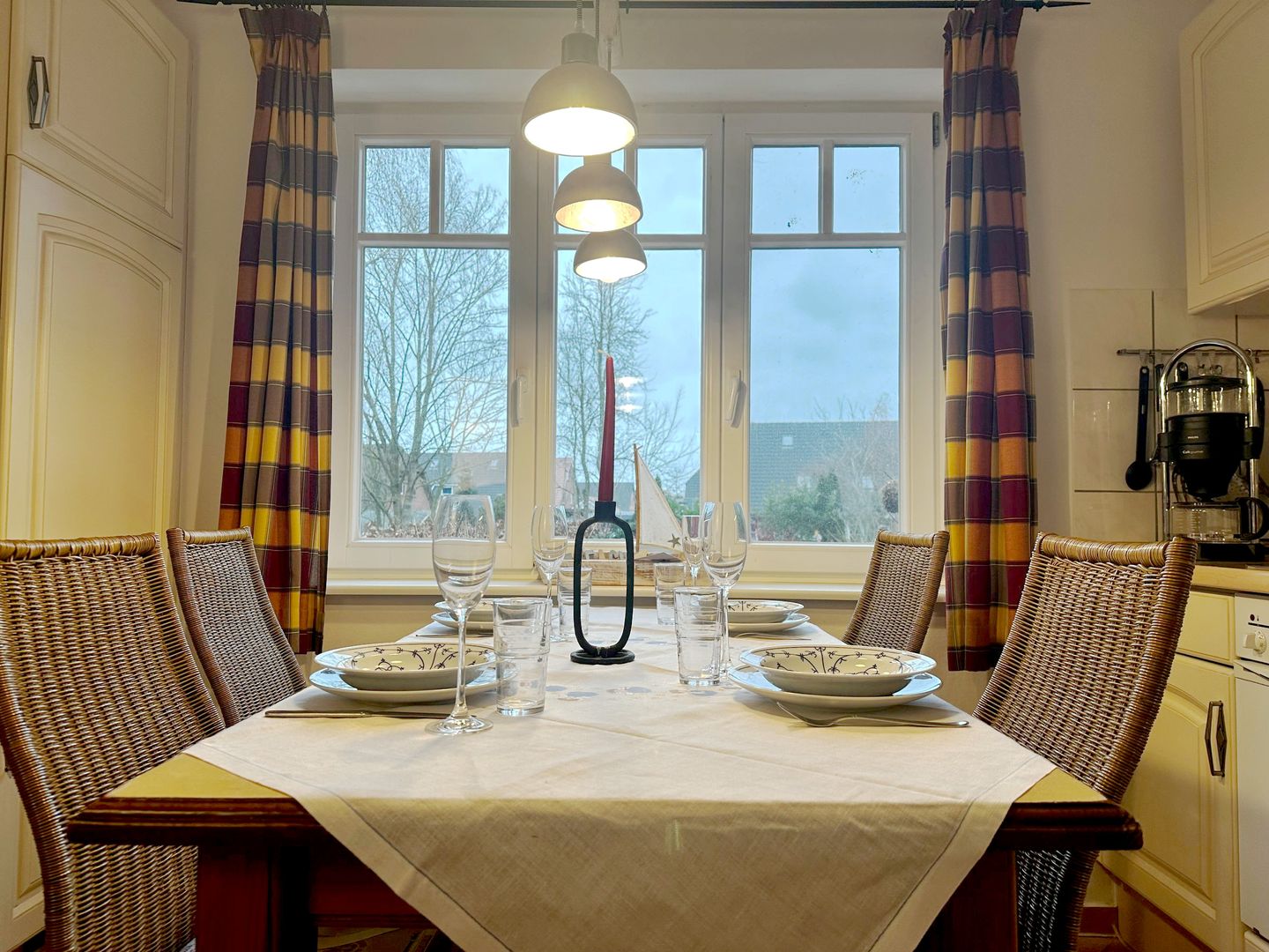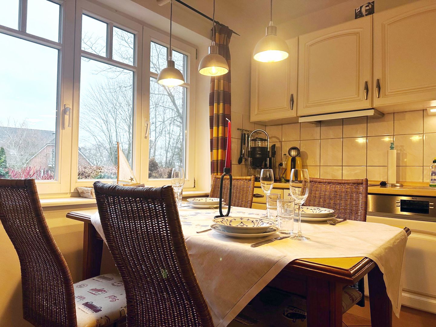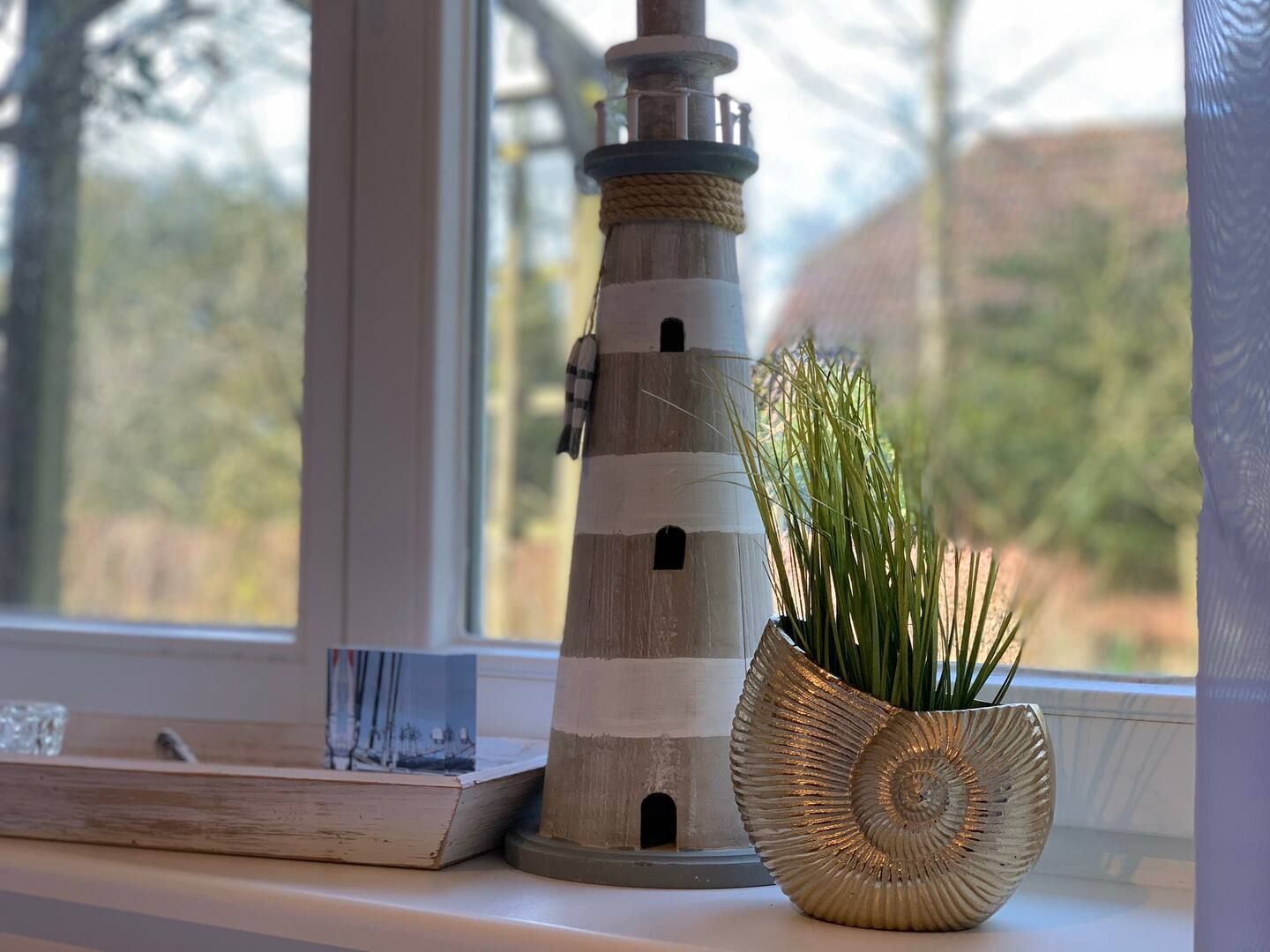 Die im Erdgeschoss gelegene Wohnung ist liebevoll im maritimen Stil eingerichtet. Freundliche Farben und ausgewählte Dekorationen sorgen für eine behagliche und entspannte Atmosphäre.