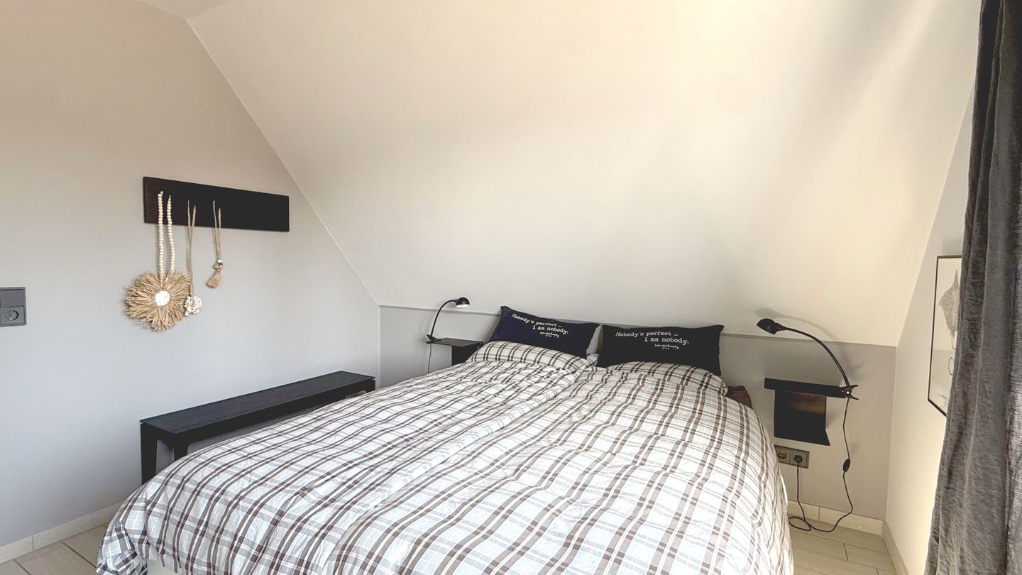 Verdunklungsplissees im Schlafzimmer lassen Sie erholsame Nächte verbringen. Auch eine Waschmaschine steht Ihnen zur Verfügung.