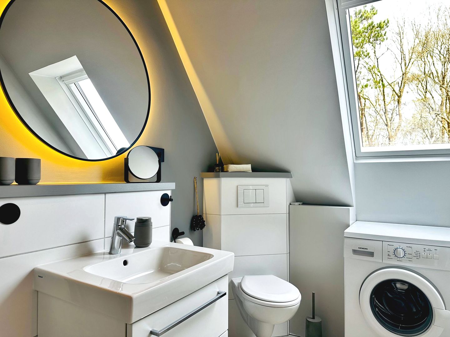 Weitere Annehmlichkeiten sind das Duschbad inkl. Föhn und Kosmetikspiegel.