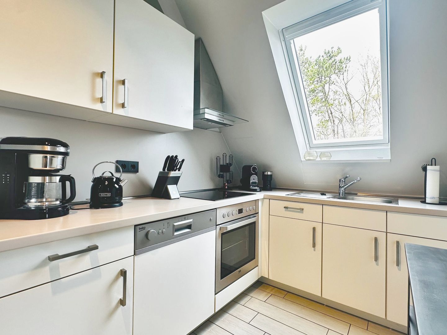 Relaxen können Sie hervorragend im Wohnbereich mit Essecke. Die offene Küche hat eine gute Ausstattung mit Geschirrspüler und Kaffeepad-Maschine.