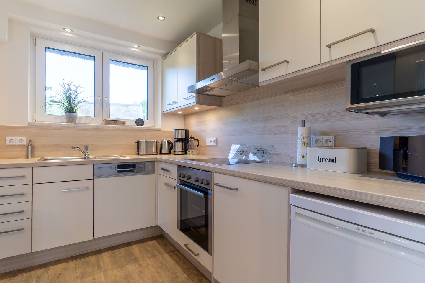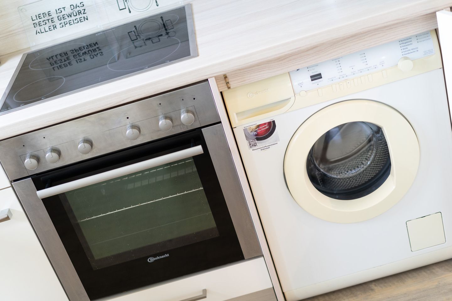 Die offene Wohnküche ist mit allen wichtigen Geräten voll ausgestattet und lädt zum gemeinsamen Kochen ein.