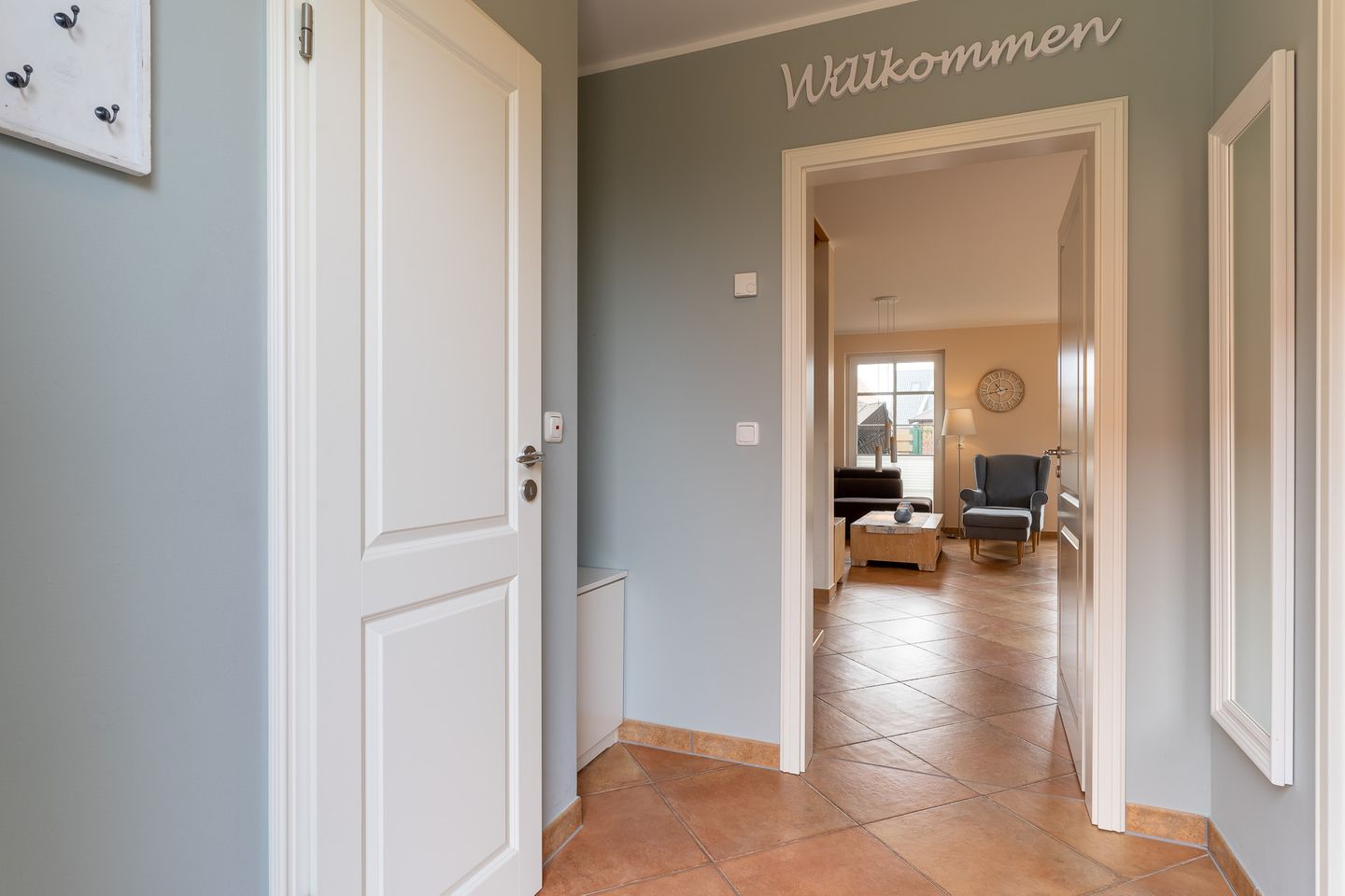 Es besteht ein direkter Zugang zur West- als auch zur Südterrasse. Auf der Südterrasse finden Sie einen Strandkorb sowie ein Teakholztisch mit 6 Stühlen + Auflagen. Auf der Westterrasse befinden sich 2 Liegen.